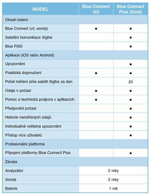Srovnávací tabulka mezi Blue Connect Go a Blue Connect Plus: